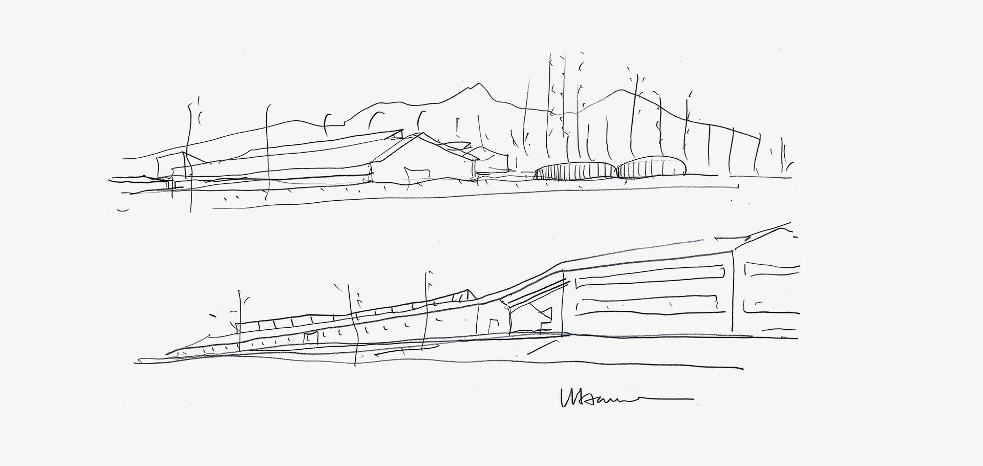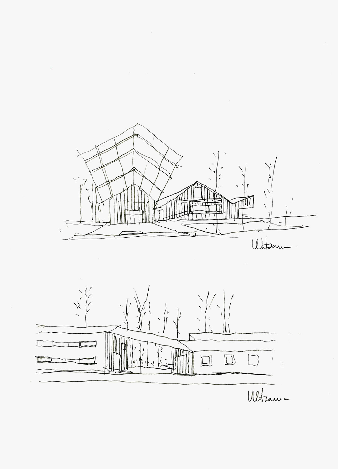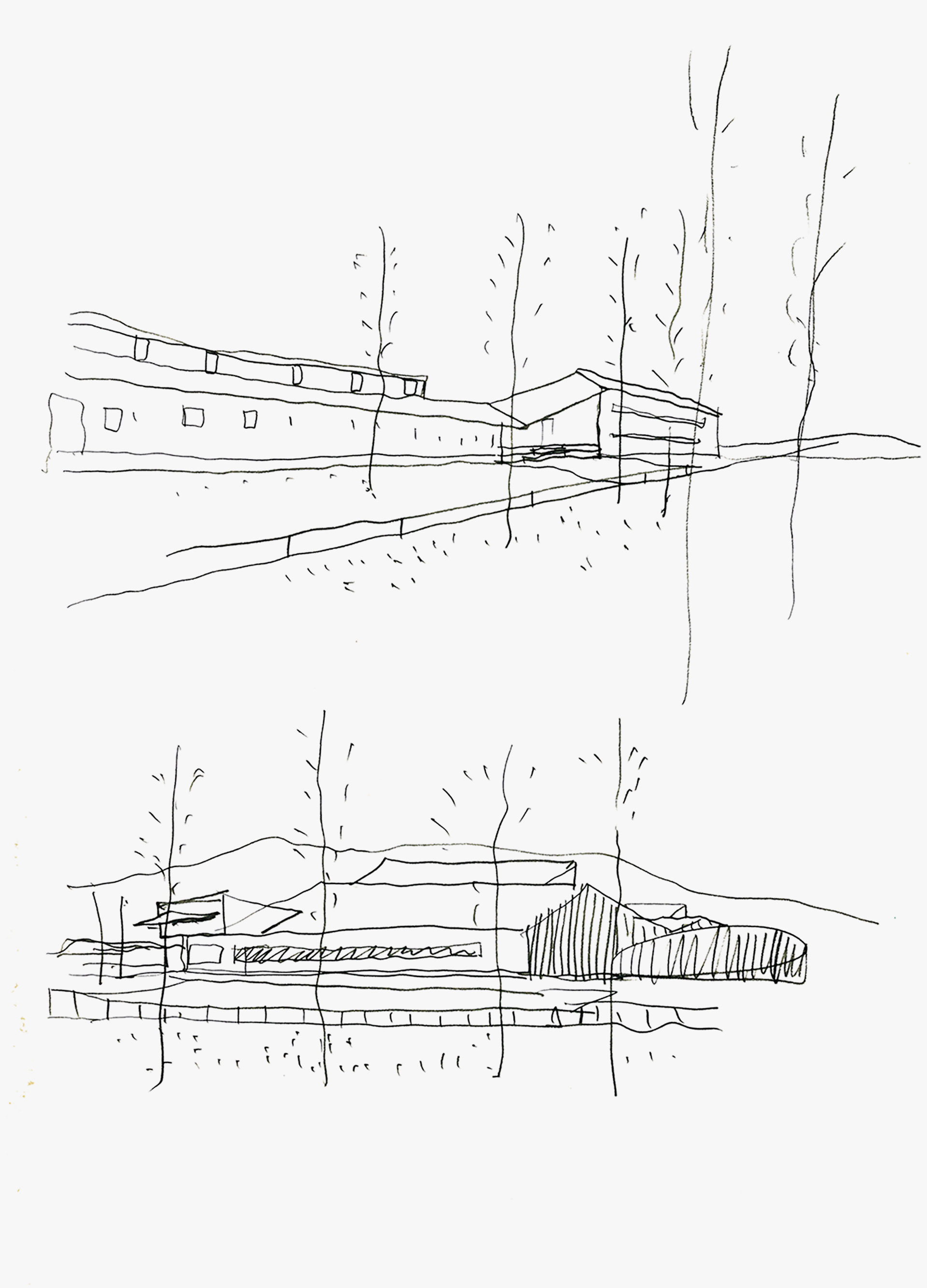 El Centro Hípico en Ultzama —un cuidado valle navarro, de gran riqueza natural, protegido y duro, donde la arquitectura de los caseríos, volumétrica y clara, se asienta con rotundidad y con respeto— participa de esta idea de establecer una relación respetuosa con el entorno natural sin dejar por ello de manifestar su condición arquitectónica. La utilización de formas y volúmenes nítidos, ejecutados con elementos reconocibles, como pasa en las cubiertas, o basadas en tipologías agrarias como las granjas de vacas comunes en el lugar, todos ellos cuidadosamente reinterpretados a partir del trabajo con los materiales —chapa de aluminio y madera de roble— ha permitido mantener un discurso que, sólo en apariencia, es de imposición. ¿Podría esta naturaleza verde y obsesiva admitir otra actitud, establecer un diálogo atractivo con otro empeño que no fuera el de colocar una arquitectura sin ‘fisuras’, y por ello mucho más respetuosa del lugar?