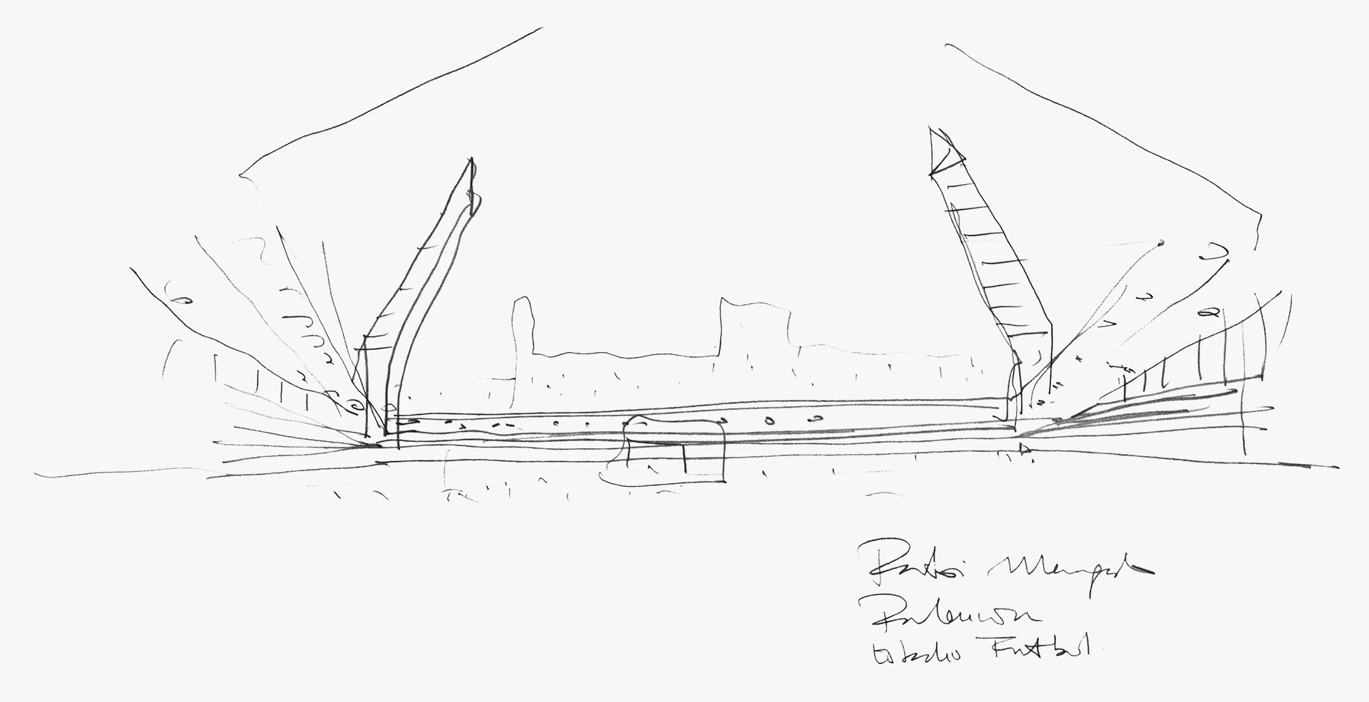 El estadio de fútbol de Palencia pretende ser, por su condición urbana, un edificio más que una infraestructura. Sus dimensiones y el lugar donde se ubica contribuyen a ello. Pero, por encima de todo, es la decisión de incluir programas públicos e institucionales en la planta baja —que garantizan la presencia continuada de usuarios, evitando así como única función la deportiva, de carácter ocasional— lo que logra conferirle esta condición. La mezcla de diferentes usos —deportivo, institucional y de oficinas—, la reconsideración del programa como argumento del proyecto, más que ninguna otra decisión formal o constructiva, es lo que dota a este estadio de un valor específico.