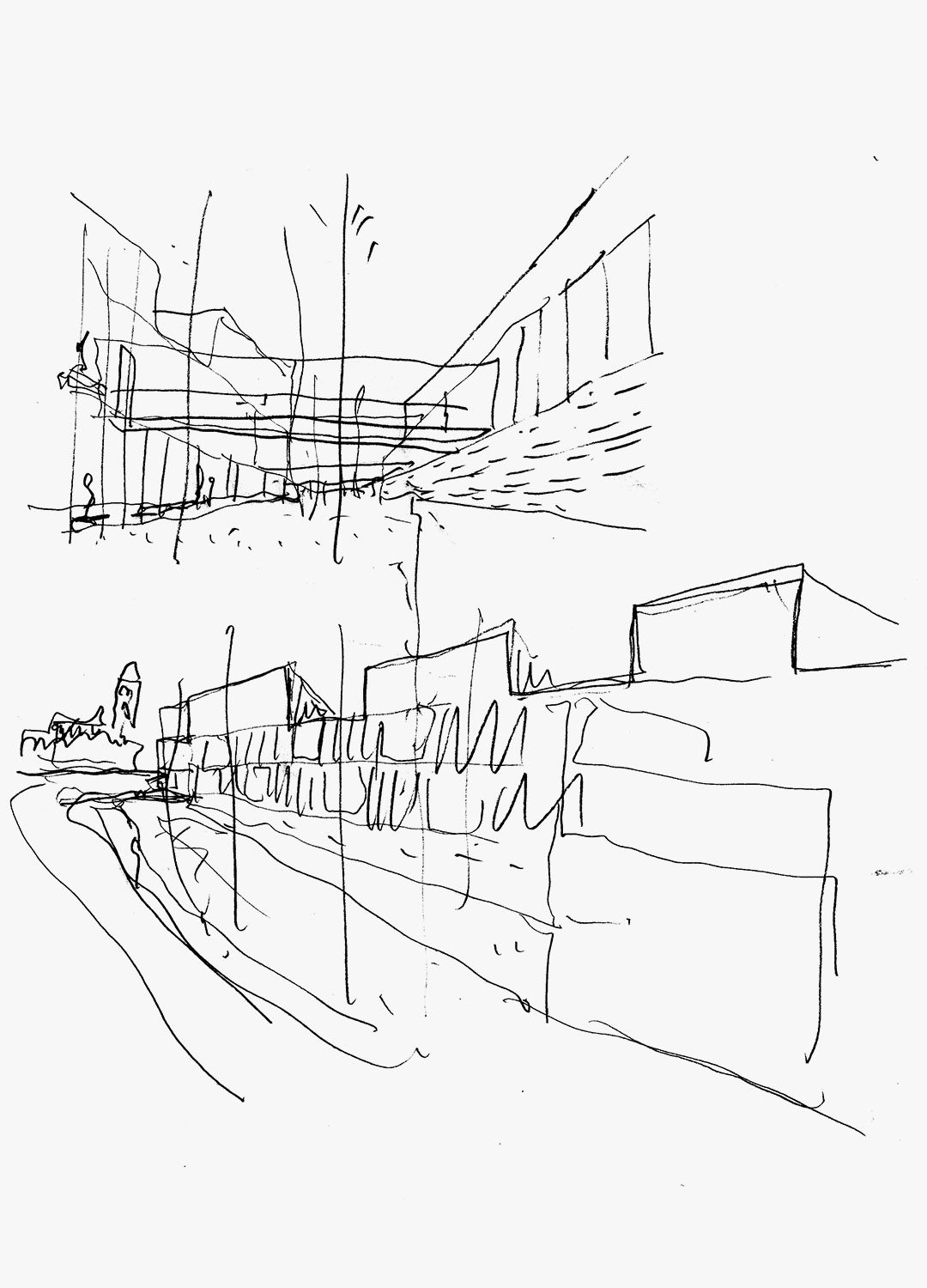 El Centro de Formación en Nuevas Tecnologías de Santiago de Compostela, además de una reflexión sobre el lugar, la topografía o su relación con el Monasterio de Conxo, es un ejercicio de transformación en estructura de un material —acero galvanizado—, conformado en delgadas pletinas: una estructura que no se destaca de modo prepotente, sino que se funde, por el fino trabajo de sus uniones y superando el límite impuesto por el pandeo, con la fachada y la carpintería. Se ahorran así energía y medios en el proceso constructivo. Este principio de trabajo estructural no es específico, sino que puede aplicarse a otras obras, porque lo importante no es la imagen resultante, sino la razón técnica, objetiva y esencialmente arquitectónica que está detrás.