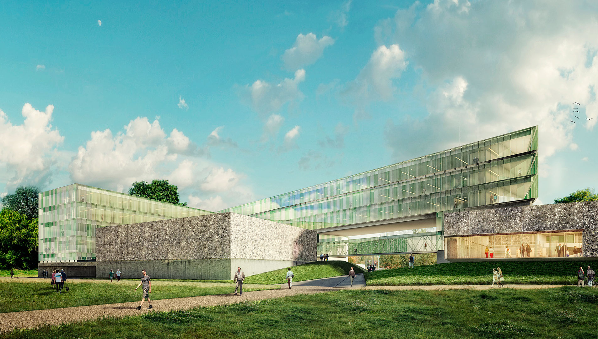 La integración formal del proyecto con el edificio Odissea es otra ventaja, ya que facilita una conexión real entre los dos. Desde el punto de vista arquitectónico y paisajístico, la estrategia consiste en crear un basamento que continúe la topografía del campus, permitiendo la circulación peatonal libre sobre él. Este basamento alberga la mayoría de los usos públicos y los que requieren mayor apoyo logístico.