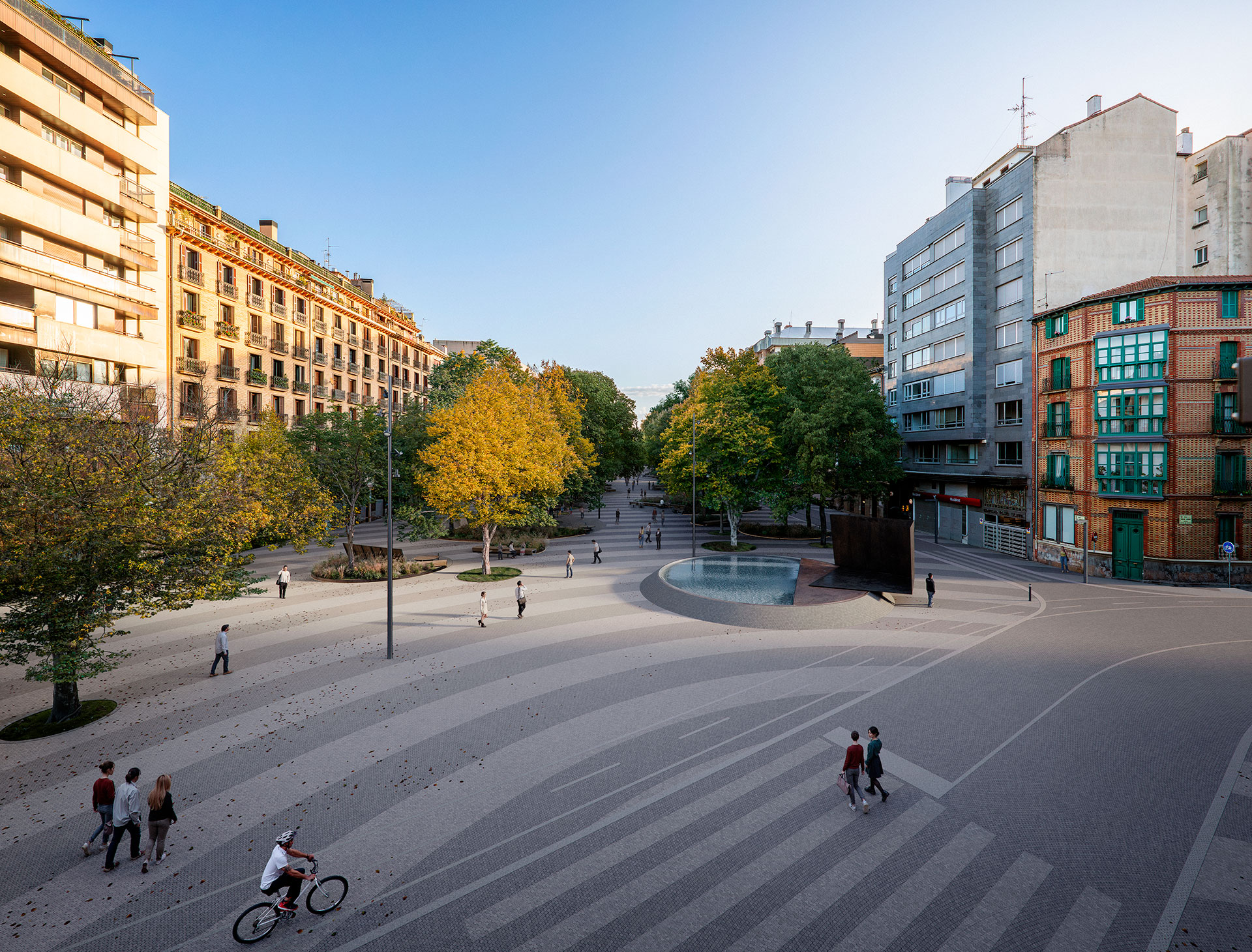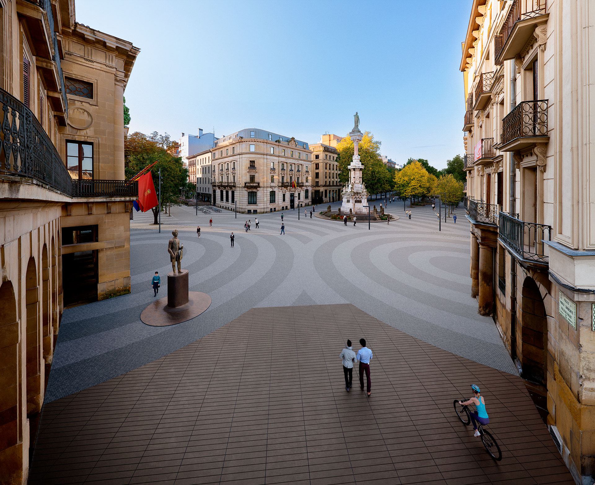 Se reubican y resignifican elementos artísticos como la escultura de Sarasate o el monumento a los Fueros, vinculándolos visual y simbólicamente con el trazado general del pavimento. El diseño pretende no solo una solución técnica, sino también una propuesta con fuerte carga simbólica e identitaria para la ciudadanía.