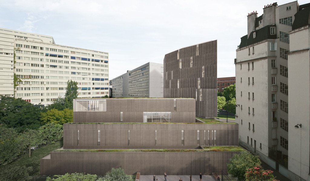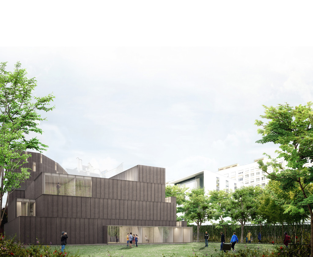 Un objetivo básico es el de ofrecer una lectura atractiva desde el Boulevard Brune. El edificio del conservatorio es una magnífica oportunidad para lograr conectar los usos que ahora están en el interior de la manzana con la “ciudad exterior”. Esta idea nos conduce a configurar el conservatorio como un edificio en conexión con el Boulevard Brune a través de un recorrido de espacios públicos, organizados secuencialmente, que tienen su origen en el citado boulevard. Un recorrido de patios abiertos a esta vía urbana que además, en términos tipológicos, permite organizar una construcción muy abierta al interior y más cerrada en el perímetro que limita con el edificio escolar y con las áreas hacia las que no se pueden abrir huecos.