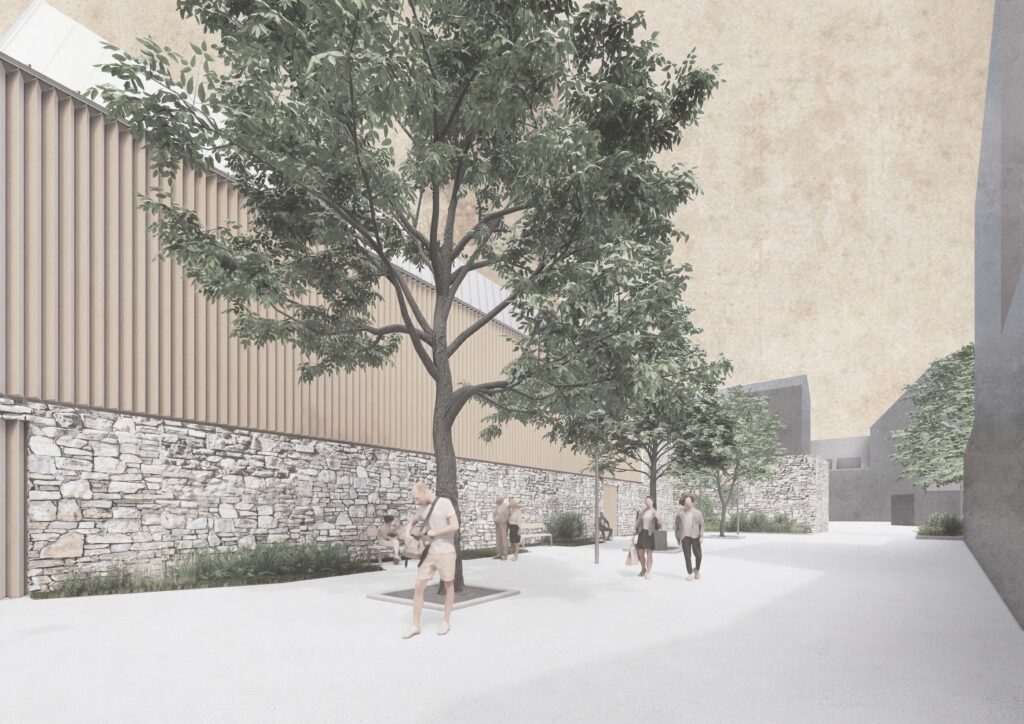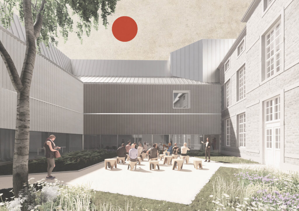La superficie adicional que requiere el programa es considerable. Una solución podría haber sido colocar las ampliaciones necesarias bajo tierra, debajo del patio y el jardín. Sin embargo, rechazamos esta idea desde el principio. Inmediatamente evidente a primera vista, es muy costosa e invasiva, pero sobre todo implica una forma de ocultación, negando esta nueva etapa en la historia de la construcción del museo, que hasta ahora se ha caracterizado por sucesivas ampliaciones. Queríamos que este «nuevo museo» estuviera marcado por una nueva intervención arquitectónica, respetando y reforzando los valores patrimoniales del edificio existente. Así pues, el proyecto respeta la tipología del edificio, entre patio y jardín, su masa y disposición, así como elementos patrimoniales destacados, como la escalera napoleónica del edificio principal. Se proponen dos ampliaciones: una en el lado del patio del edificio existente y otra en el borde del jardín.