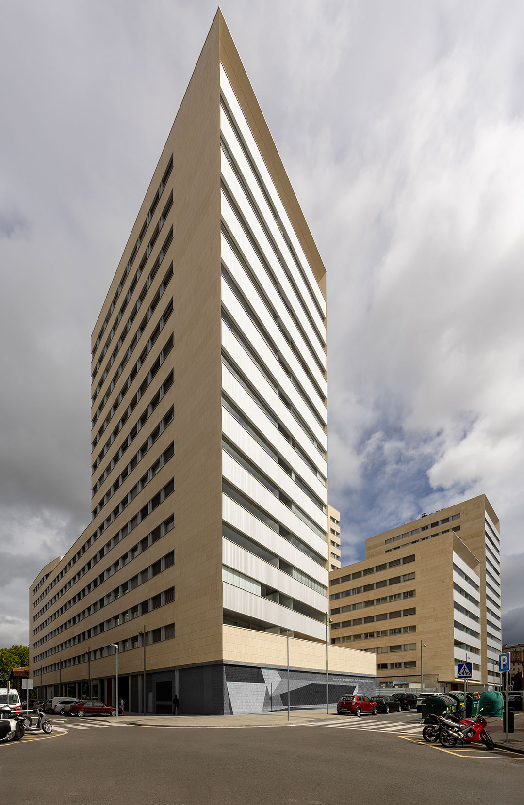 Más allá de una consideración de “la manzana” como elemento más o menos autónomo que viene a completar la expansión de la ciudad consolidada, la propuesta trata de explorar la condición de borde o límite del lugar, buscando una solución sensible y permeable, que refuerce la relación entre la ciudad y el magnífico perímetro de espacios libres y recorridos peatonales que caracterizan el límite de la meseta sobre la cuenca de Pamplona.