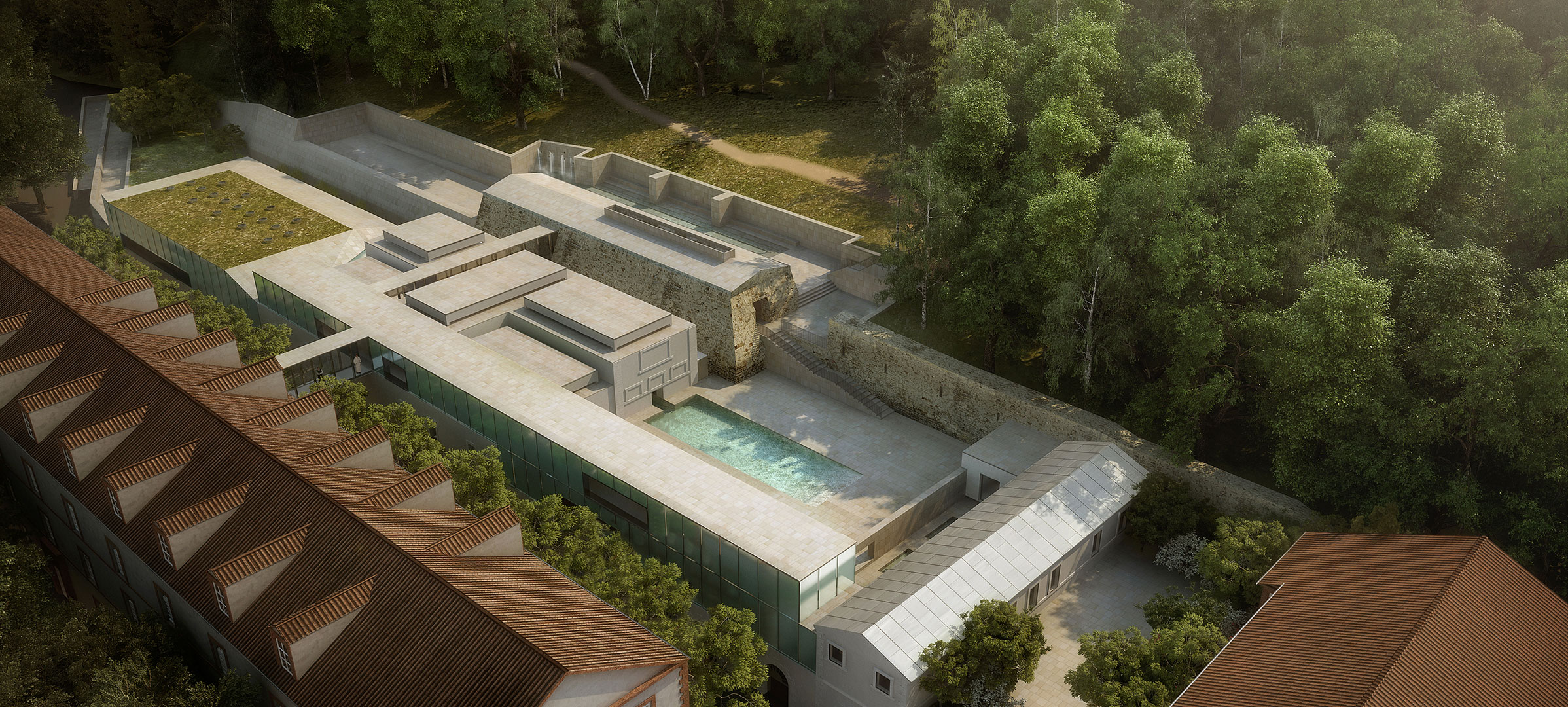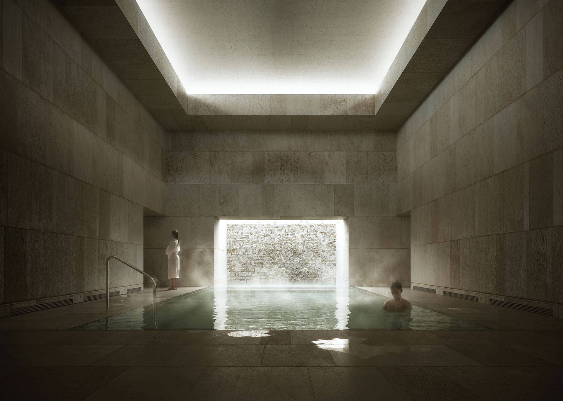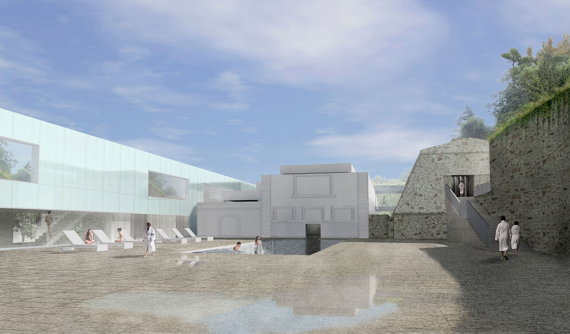 La base de la actuación ha sido entonces intentar respetar la construcción existente del antiguo complejo de las termas en todo lo que se refiere a su parte masiva y permanente, reconfigurando las cubiertas, reforzando los espacios termales resultantes, y creando un nuevo cuerpo, más ligero y vítreo, que apoyando y discurriendo entre la edificación existente que actúa a manera de zócalo, permite incorporar las nuevos usos junto con el esquema de circulaciones necesario para el perfecto funcionamiento del nuevo conjunto termal.