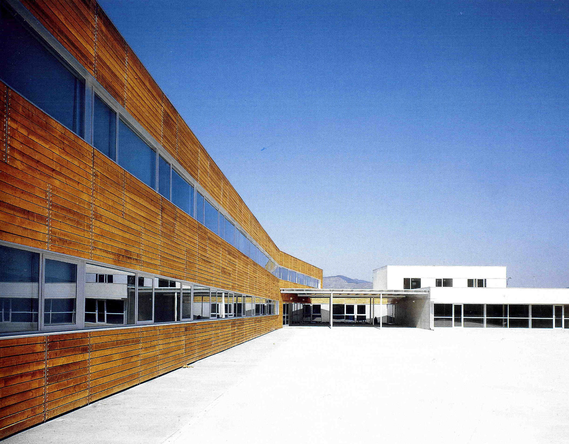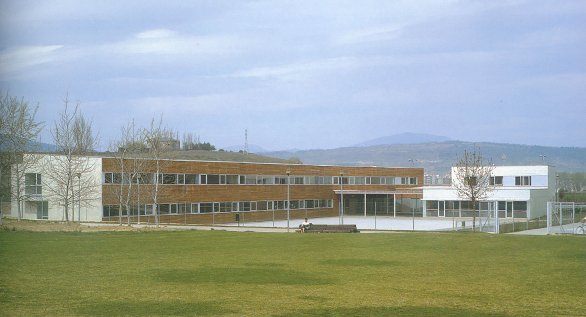 Un complejo escolar en un área de nueva edificación en el exterior de Pamplona. Un área donde el diseño urbano ha primado el parque no sólo como mecanismo ordenador del conjunto de las viviendas, renunciando así a cualquier otra estructura urbana ficticiamente impuesta en un nuevo núcleo donde no existen preexistencias ni continuidades con la ciudad existente, sino que ha hecho que las dotaciones se localicen en el mismo como si de un «campus» universitario se tratara, dotanto a este parque ya con significación urbana, de contenido funcional que lo soporte y justifique esta. Un complejo escolar pues que no se construye sobre un solar, sino sobre un Parque ya ejecutado que «amablemente» permite la inserción en el mismo de un edificio que lejos de inhibirse pasará a ser un elemento más de su paisaje.