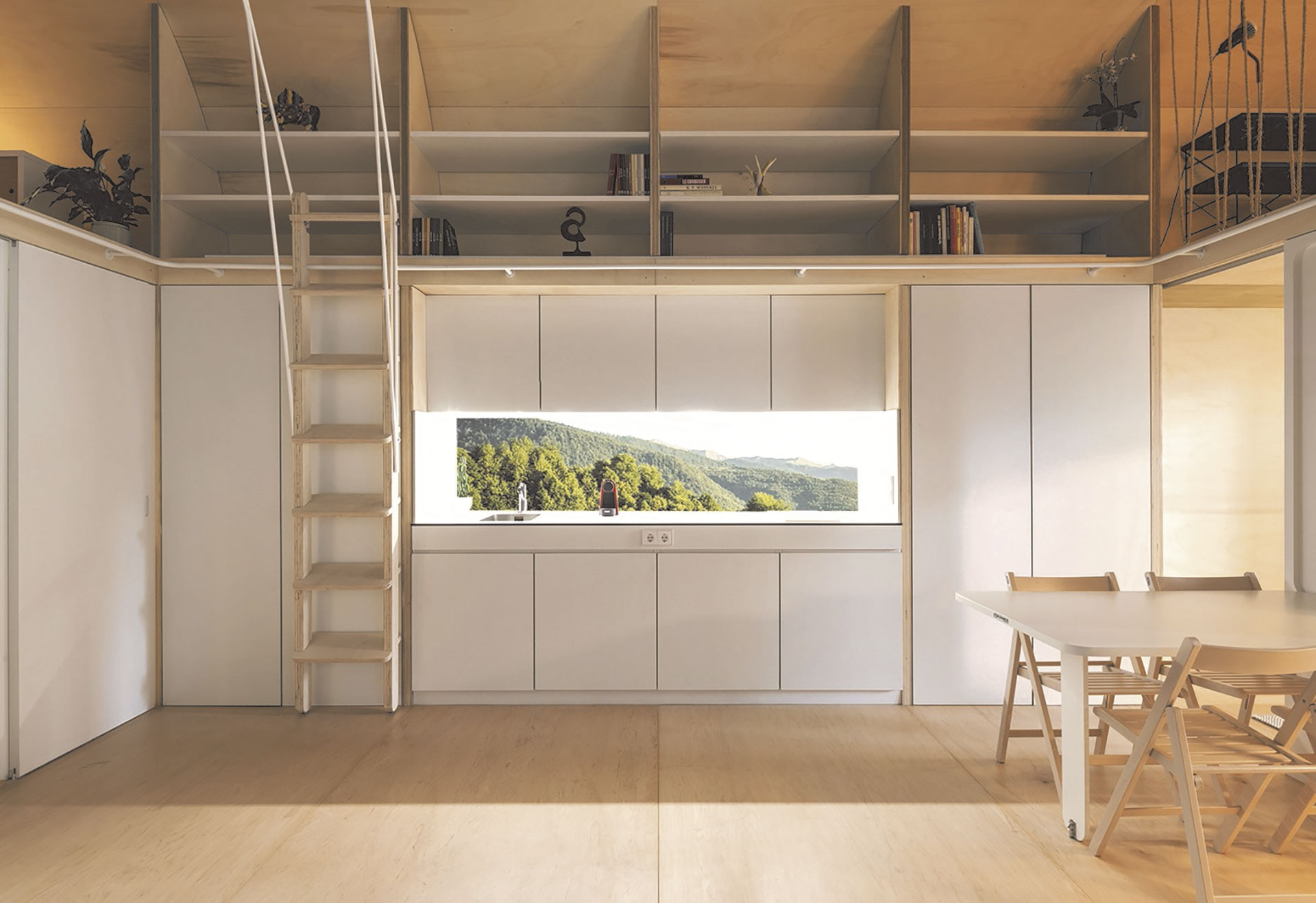 Todas las configuraciones comparten un módulo central que integra los elementos necesarios para el uso autónomo de la vivienda, constituyéndose como la célula mínima habitacional. Este núcleo puede ampliarse mediante la adición de una o dos alas laterales, lo que permite generar versiones de mayor superficie.