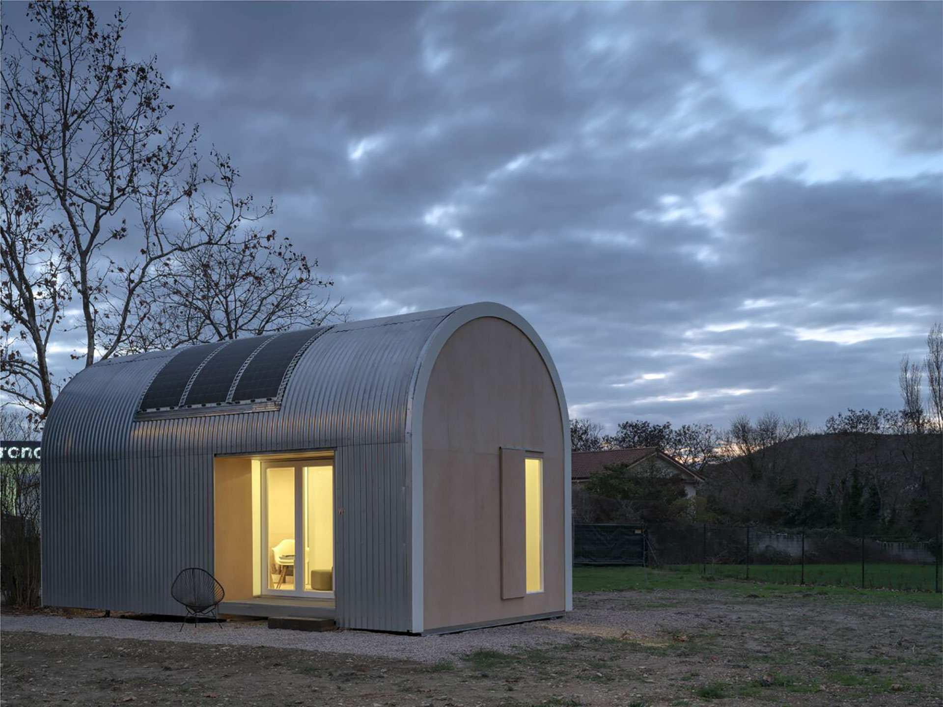 La forma curva del volumen, junto con la envolvente adaptable, permite una integración eficaz en entornos naturales diversos. Estas características hacen que el sistema mohma sea adecuado para implantaciones en contextos rurales o no urbanos.