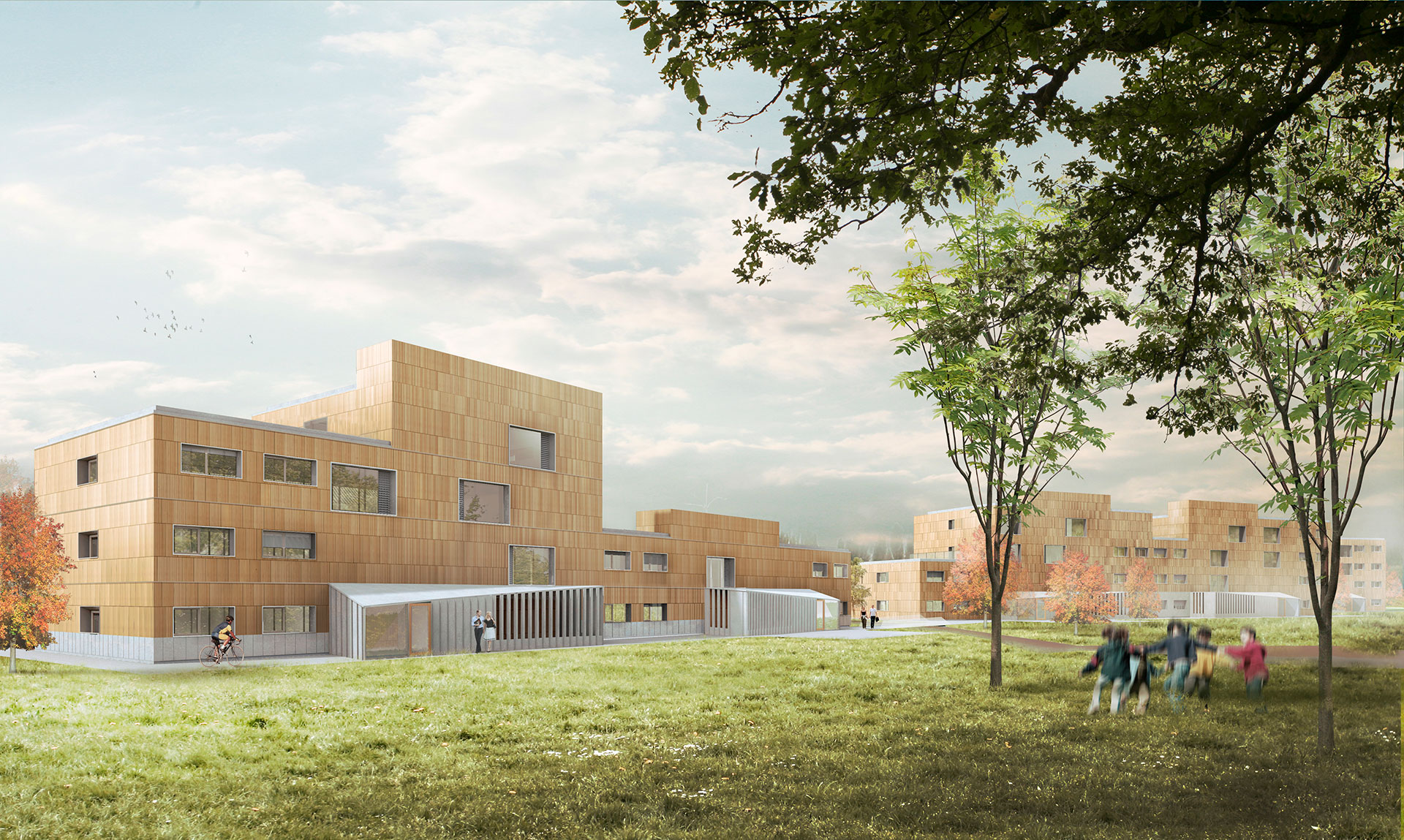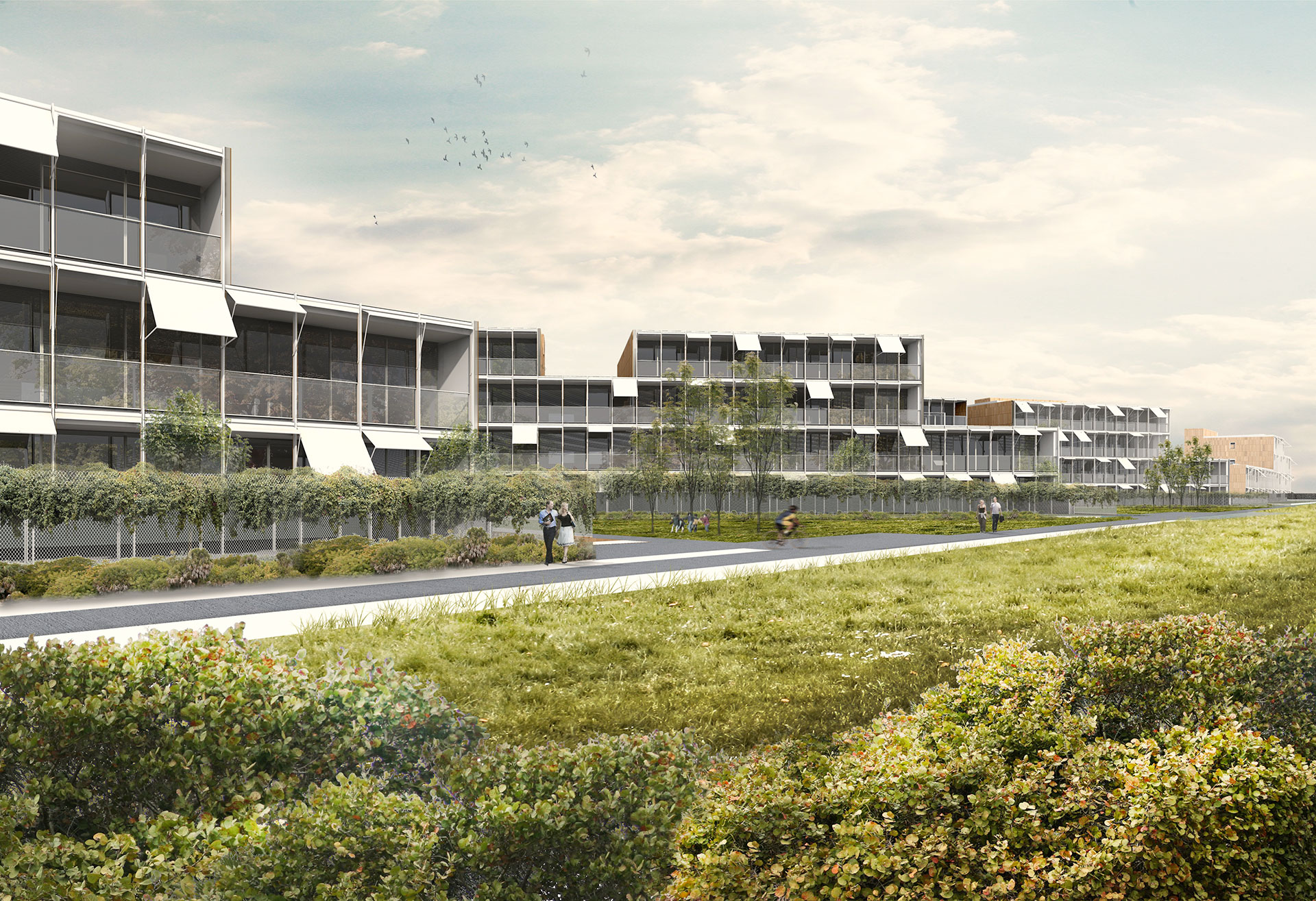 - La configuración del espacio público, donde la implantación de los diferentes edificios se realiza buscando siempre distintas perspectivas diagonales, resaltando un espacio exterior ajardinado e intersticial rico de visuales complejas y atractivas así como conexiones visuales entre los futuros espacios de las viviendas.